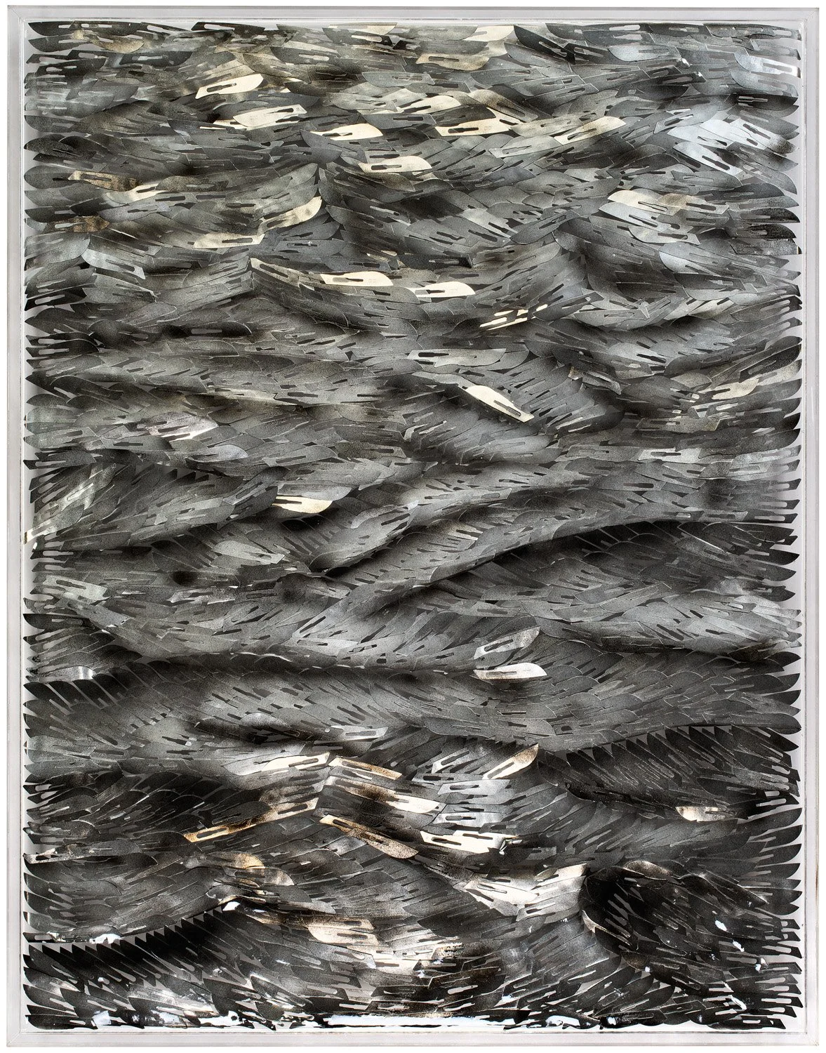 Nocturne, 2015. Oil on surgical scalpel blades and diamonds in resin on Perspex. 64 x 82cm. View fullsize